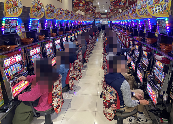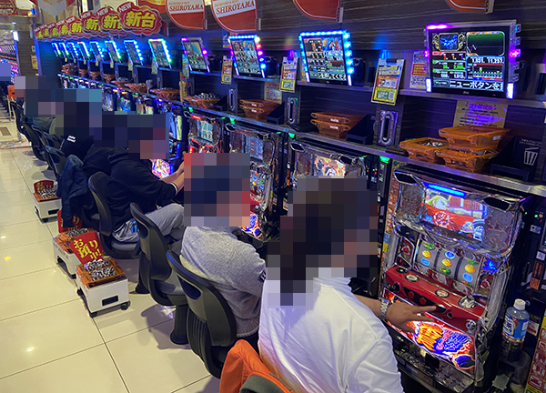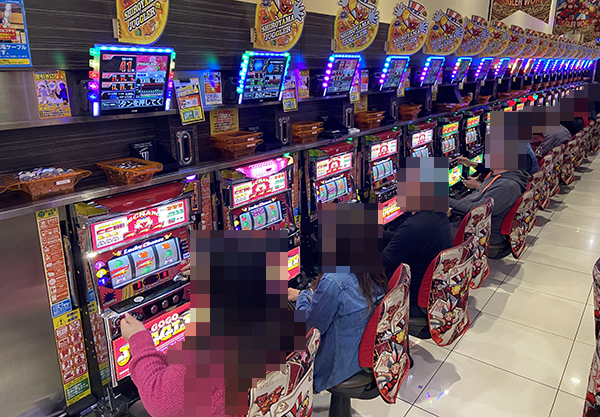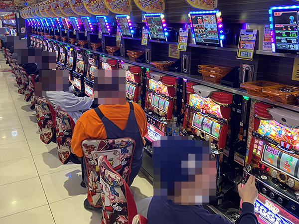 パチスロコーナーの状況をうかがうと、さまざまな機種が盛況となっており、どの場所も大にぎわい!