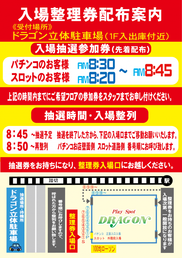 本日9時開店🕘8:45~立体駐車場にて抽選開始になります❗