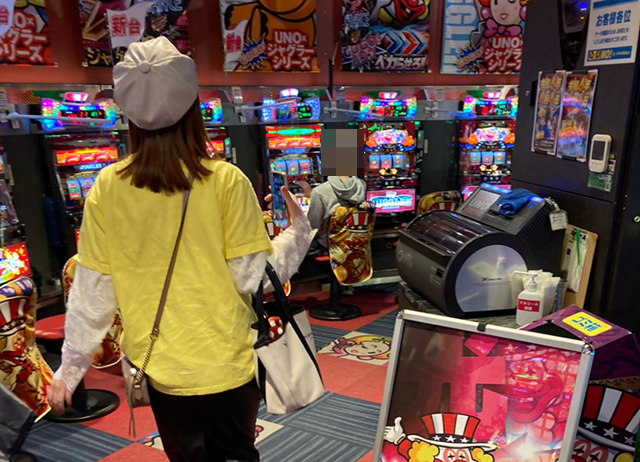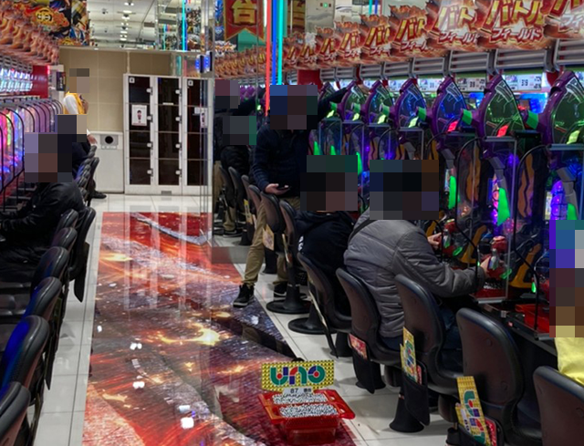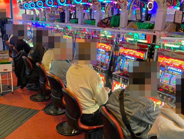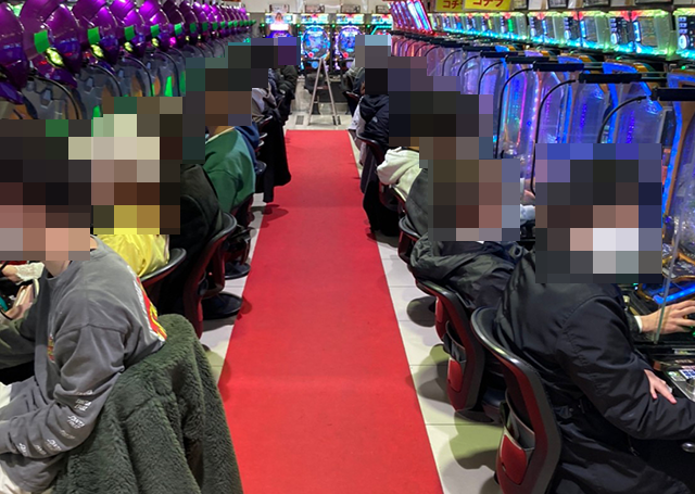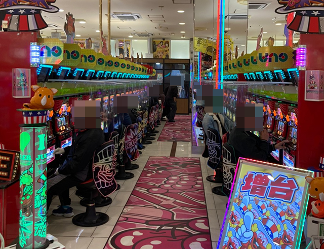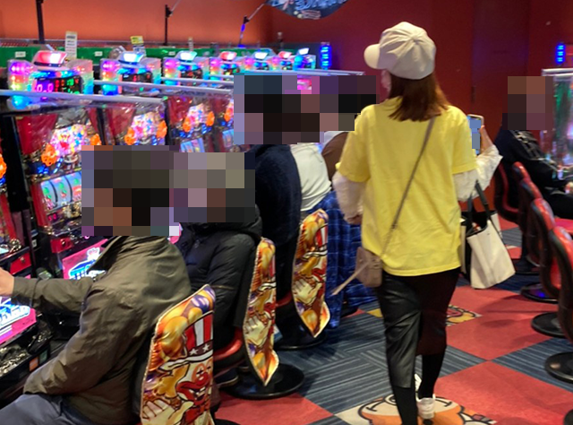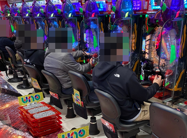 ホール到着とともに、たくさんの遊技を楽しむ人の姿がみられた「中山UNO」!
