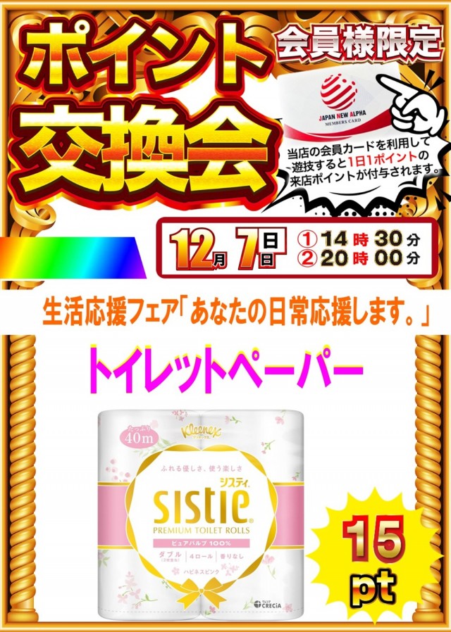 本日パチンコ&スロットはジャパンへ、交換会、総付景品配布日!