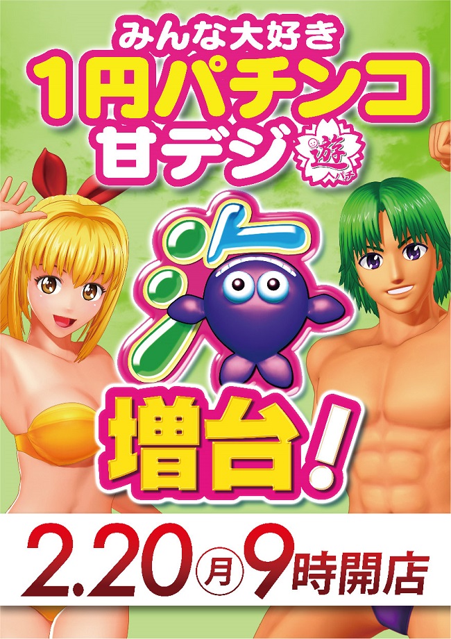 2月20日(月)9:00開店!1円パチンコに海増台!
