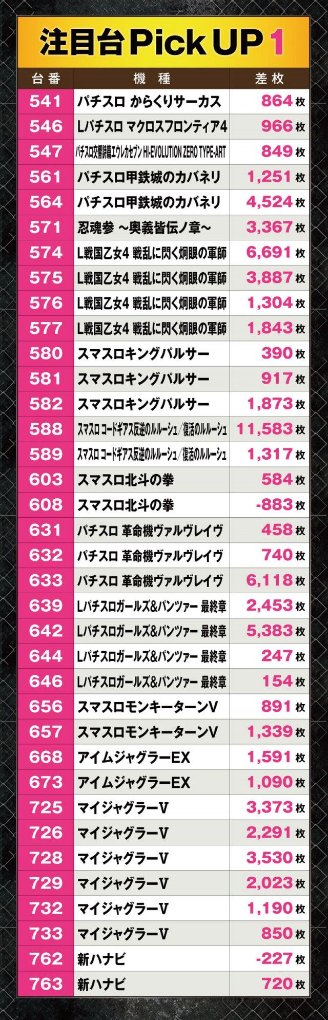 店内を見てみると、全台系や並びを中心に好調台が目に付いた。そしてそのほとんどがプラスと素晴らしい結果になっている!