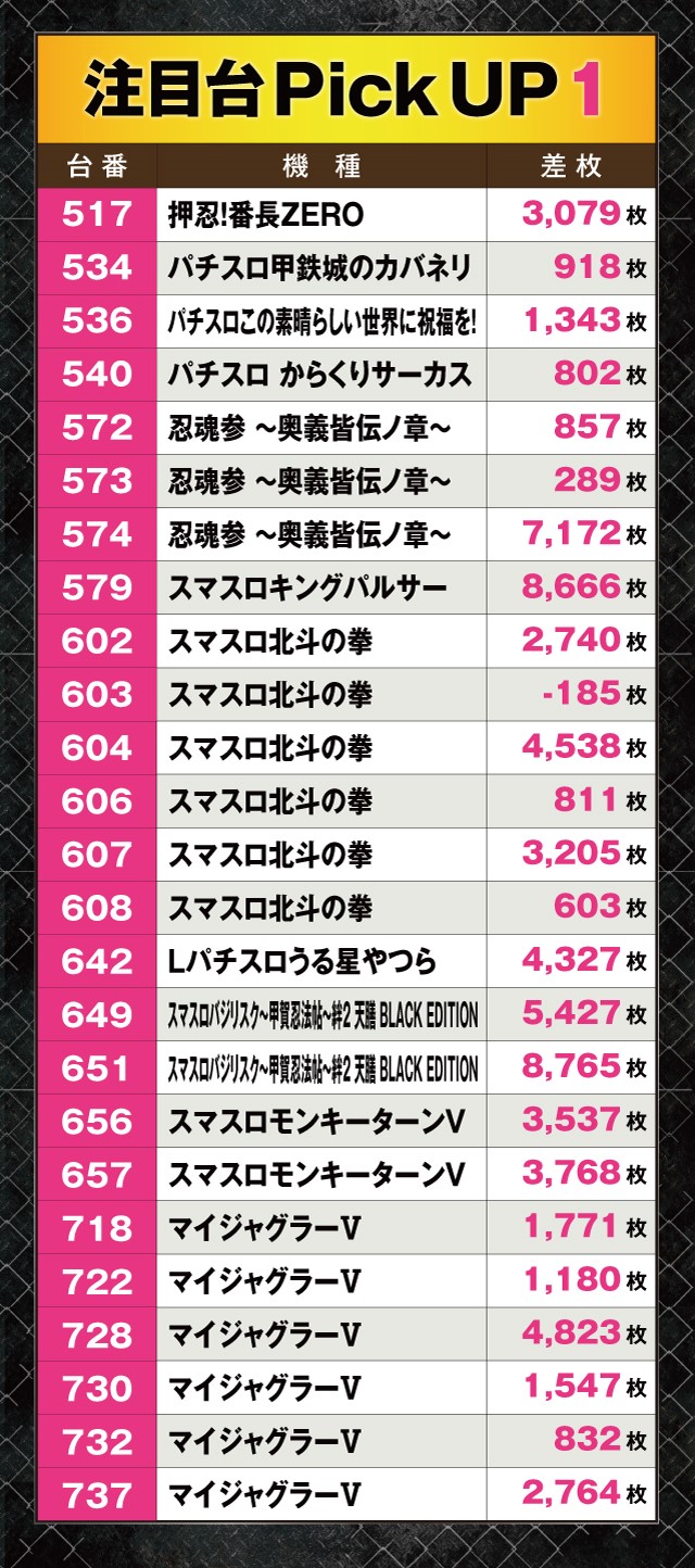 今回の好調台は、1台以外すべてプラスという素晴らしい活躍ぶりを披露している!