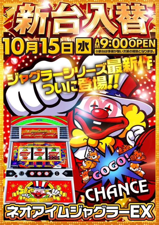 本日ネオアイムジャグラー登場!スマパチ・スマスロも増台!!