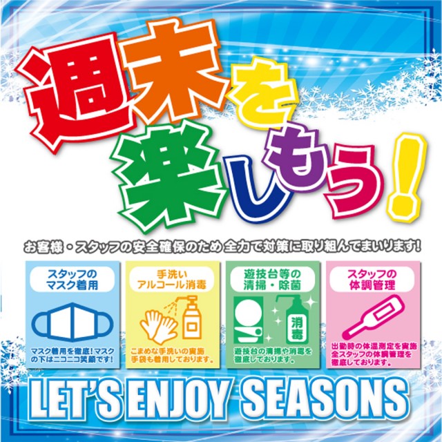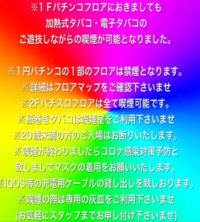 【整理券配布】AM8:30よりご来店順に入場整理券をお配り致します。(並ばずに駐輪場で間隔をとってお待ちくださいませ)【入場時間】AM9:00より入場整理券順にご入場となります。(入場整理券はパチンココーナー・パチスロコーナー共通です。) |