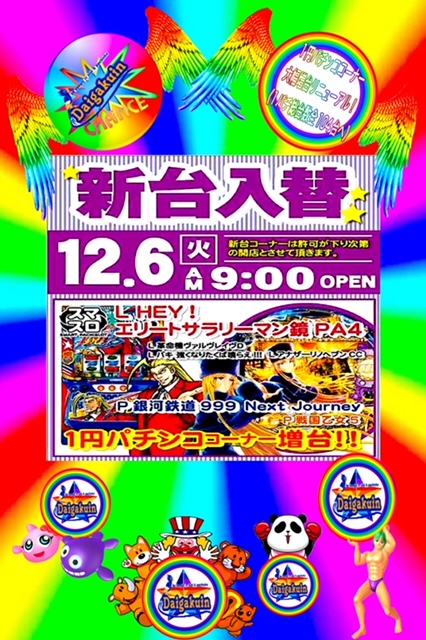 12月6日(火)スマスロ4機種導入予定!