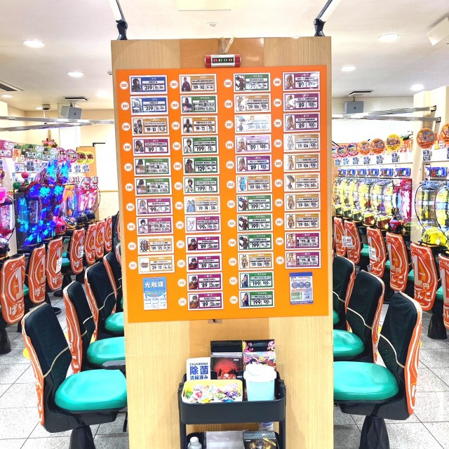 【整理券配布】AM8:30よりご来店順に入場整理券をお配り致します。(並ばずに駐輪場で間隔をとってお待ちくださいませ)【入場時間】AM9:00より入場整理券順にご入場となります。(入場整理券はパチンココーナー・パチスロコーナー共通です。) |
