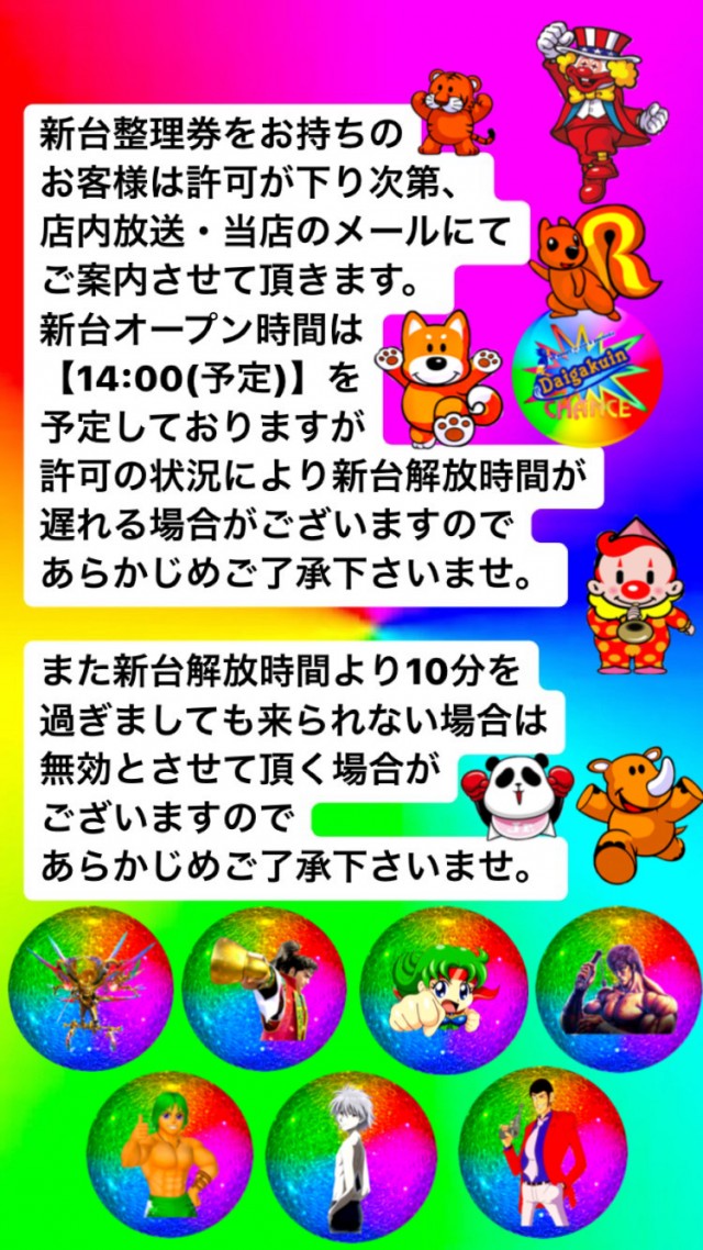 ◆本日新台導入日◆新台抽選は各階で13時に行います◆