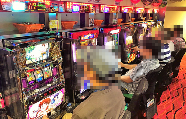 午後のパチスロにおいて、注目を受けていたのが「押忍!サラリーマン番長」。シマ内に広がる鮮やかな光景が、満足度の高さをあらわしているようであった。