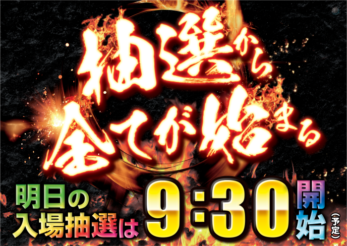 通常8:45までに駐輪場にお集まりください。※混雑予想される日は抽選時間を変更する場合がございます。LINE・Xでお知らせします |