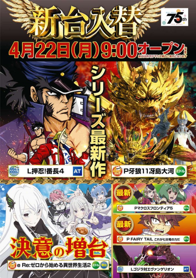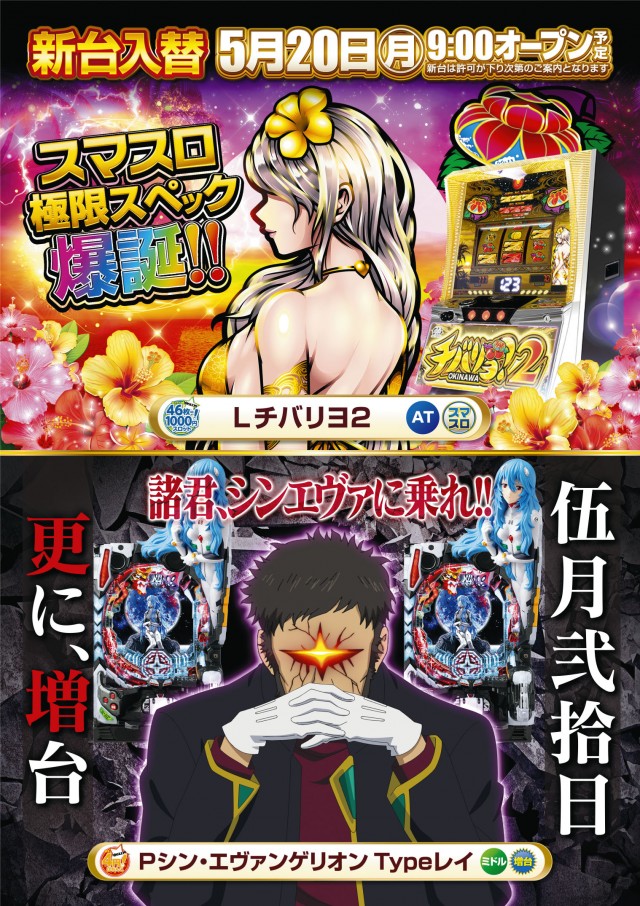 5月20日(月)新台入替9:00オープン(予定)