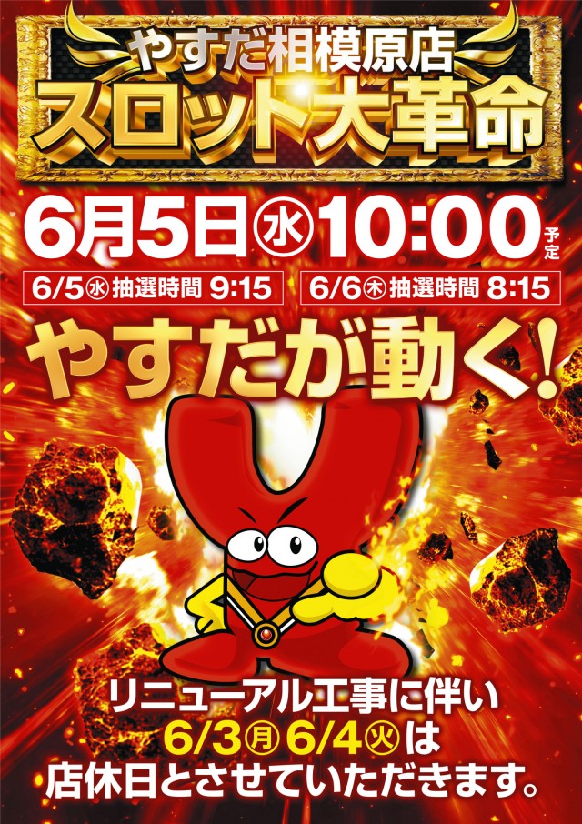 6月14日(月)リニューアル後、初の新台入替9:00オープン