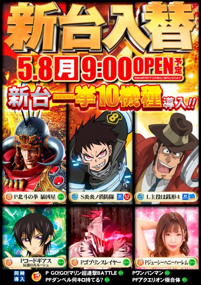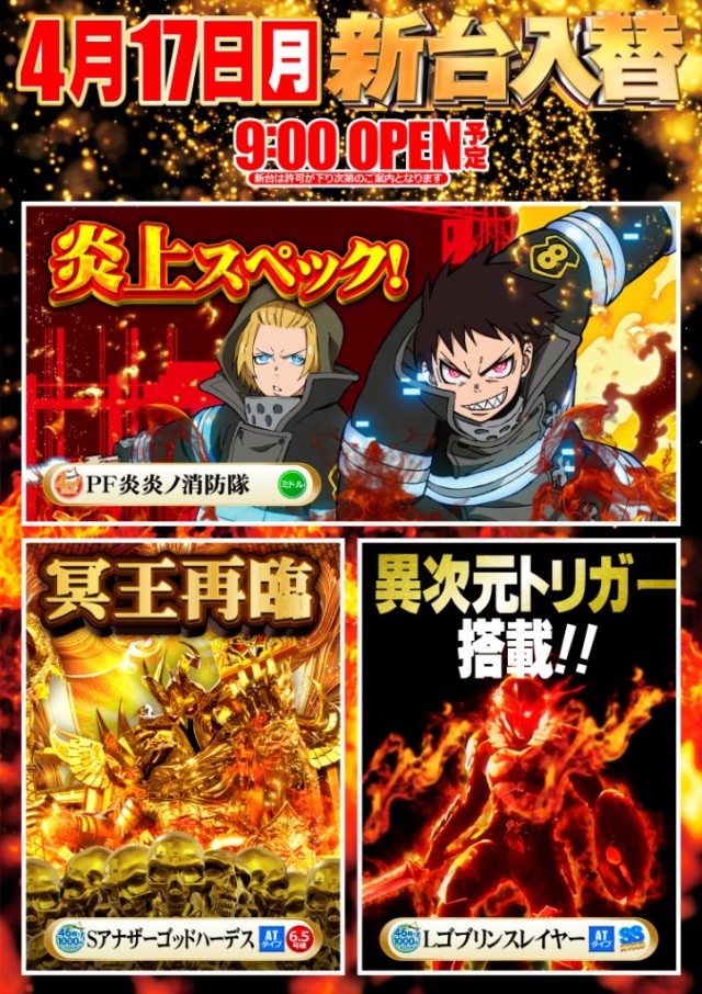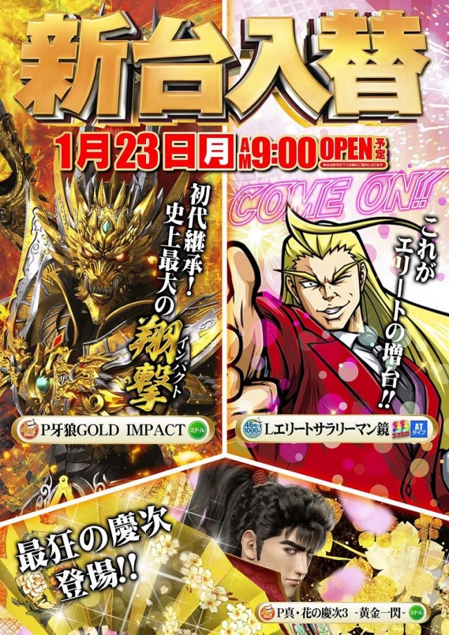 平常営業日 9:00~23:00 (遊技終了時間 22:45) |