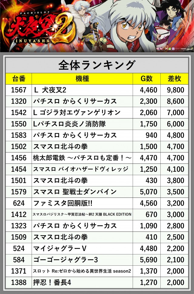 厳選された取材対象機種をはじめ、その他スロット全体から好記録が飛び出した!プレイヤーが楽しんだ1日を下記データにて振り返ってみて欲しい。