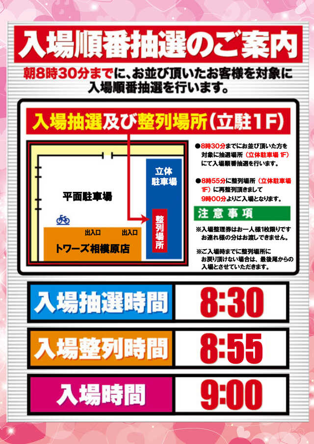 8:45から立体駐車場1Fにて入場抽選開始 |
