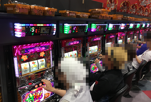 ジャグラーシリーズと沖スロコーナーもにぎわいは大きい。