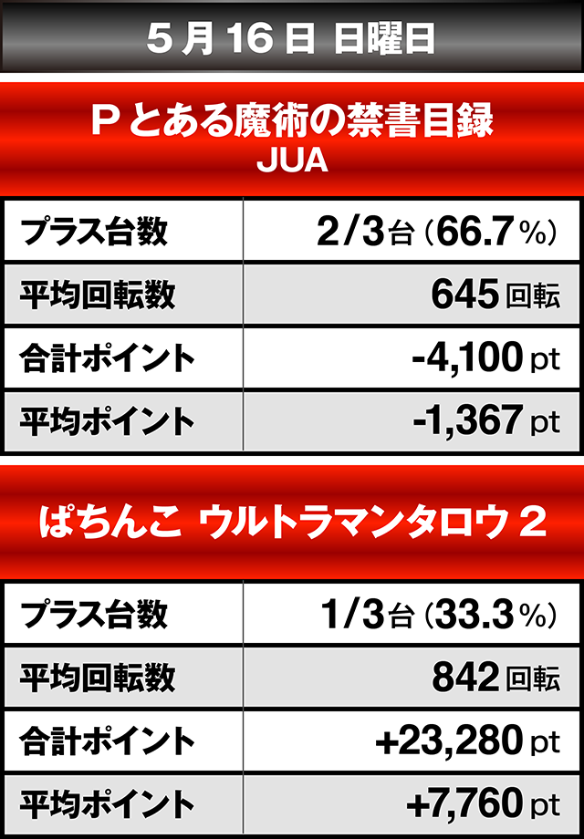 そのほかにも、「P戦国乙女6 暁の関ヶ原」や「Pとある魔術の禁書目録JUA」など、ミドルタイプを中心に幅広いスペックの機種が日曜日を鮮やかに彩り、好結果を残した。