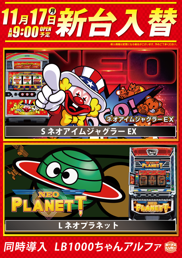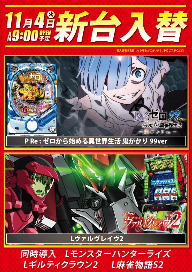 4月22日(月) リニューアルオープン×新台入替・5スロ新設