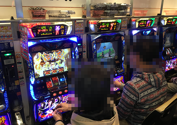16時を過ぎた頃の4円パチンコでは、「CRスーパー海物語IN沖縄3」などの海物語シリーズが大盛況。プレイヤーたちが機種の魅力について話をしている姿も印象的であった。