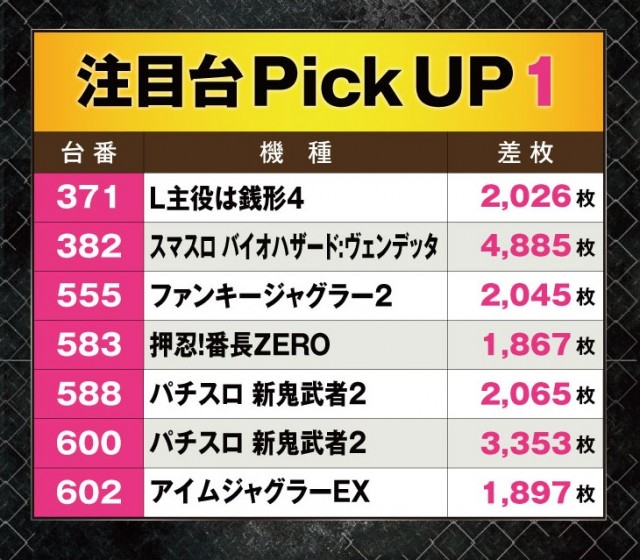 『スマスロ バイオハザード:ヴェンデッタ』の4,885枚をはじめ、『パチスロ 新鬼武者2』で3,353枚など機種性能をフルに活かす好調台が見受けられ、プレイヤーたちの満足度はかなり高かったように思う。次回のブラックエンジェルス降臨の際も、是非この結果を参考にしてほしい。
