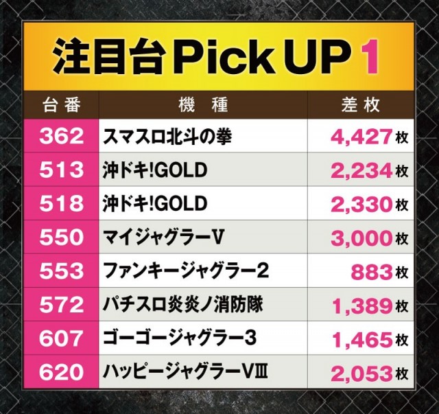 今回は至る所で好調台が目に付く結果となった。そしてその台のすべてがプラスと圧巻の内容になっている!