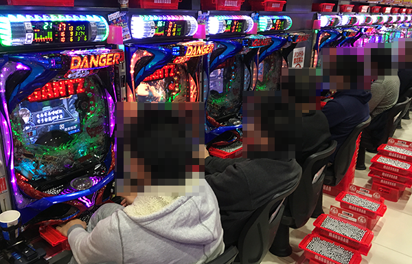 午後の4円パチンコでは、「CRスーパー海物語IN沖縄4」と「CRぱちんこ GANTZ」がほぼ満席。機種の特徴を活かしているようなプレイヤーが多く、満足度の高さも感じられた。