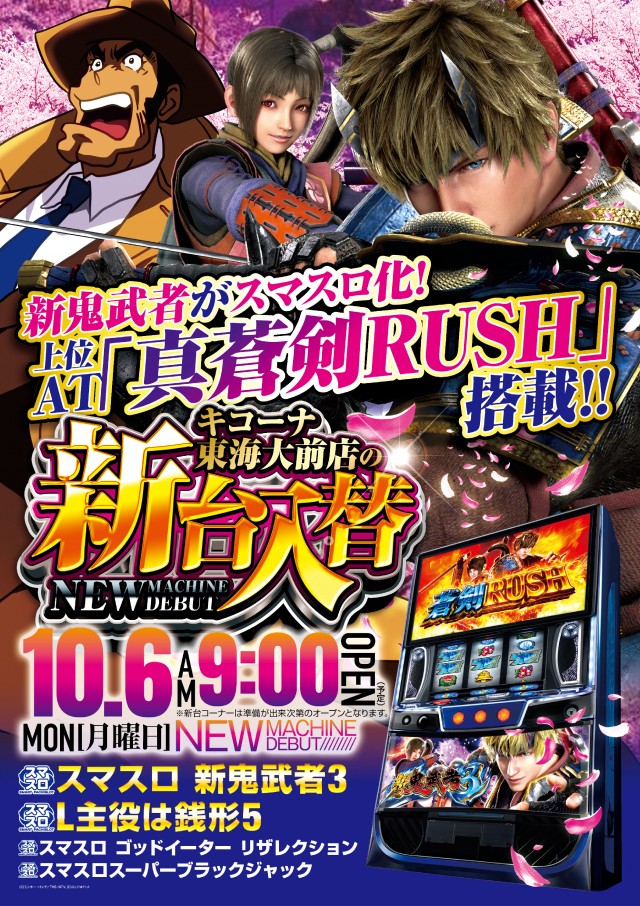 ☆明日10/6(月)新台入替☆最新機種大量導入!!☆