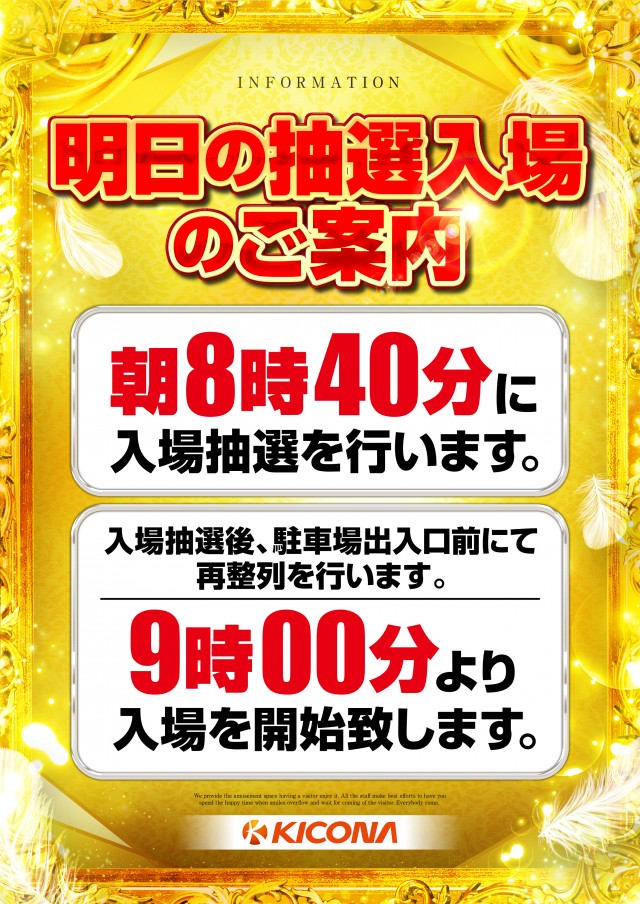 混雑が予想される場合、抽選入場になります!!ご注意ください。 |