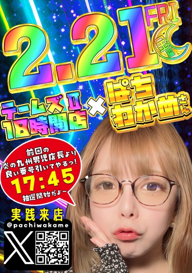 2月21日(金) 『2階スロットフロア18時開店』❗❗🌙