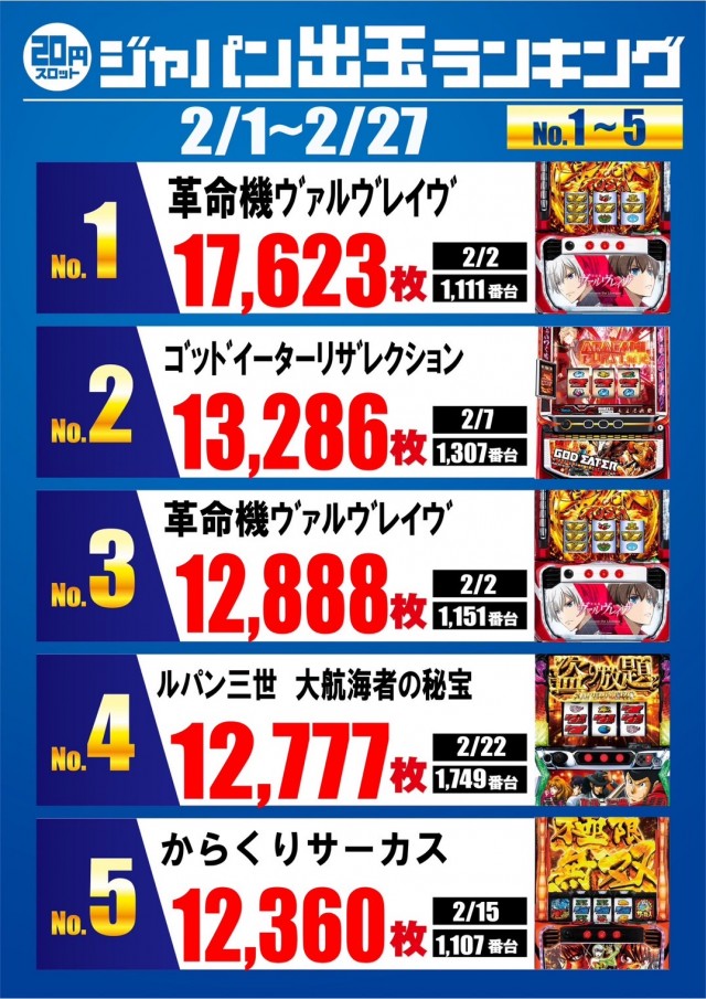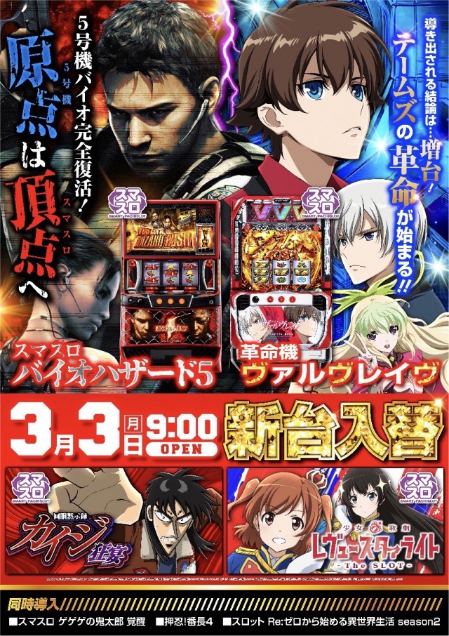 2月3日(月) 新台入替 『最新台もテームズで楽しもう!』🌈