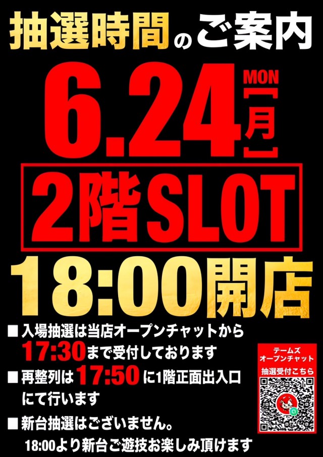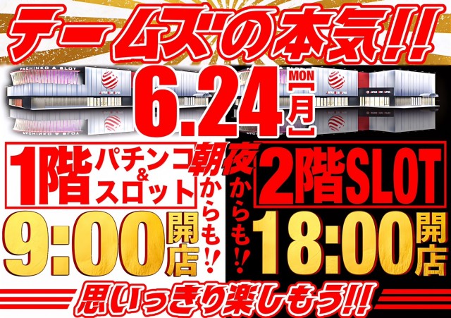 本日新台入替&2階スロット全台18時OPEN!テームズの本気
