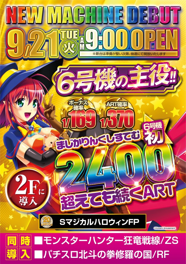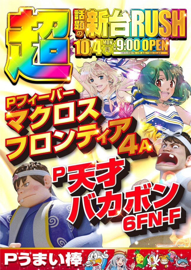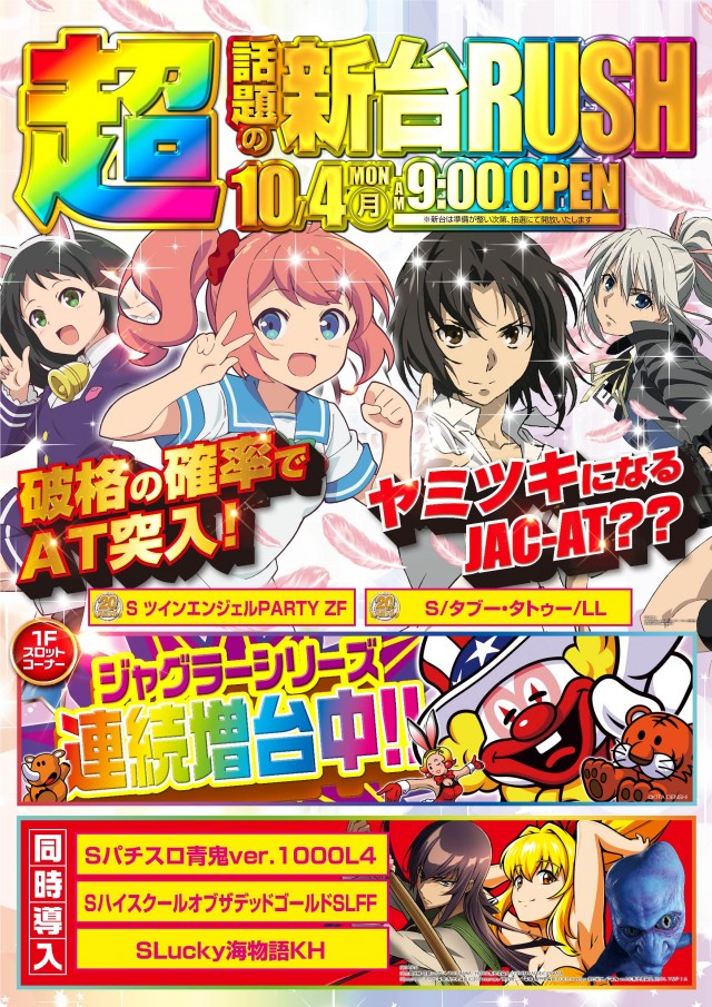 明日10月4日(月)新台入替 9:00OPEN!!