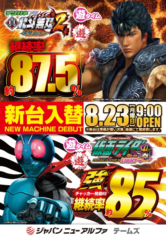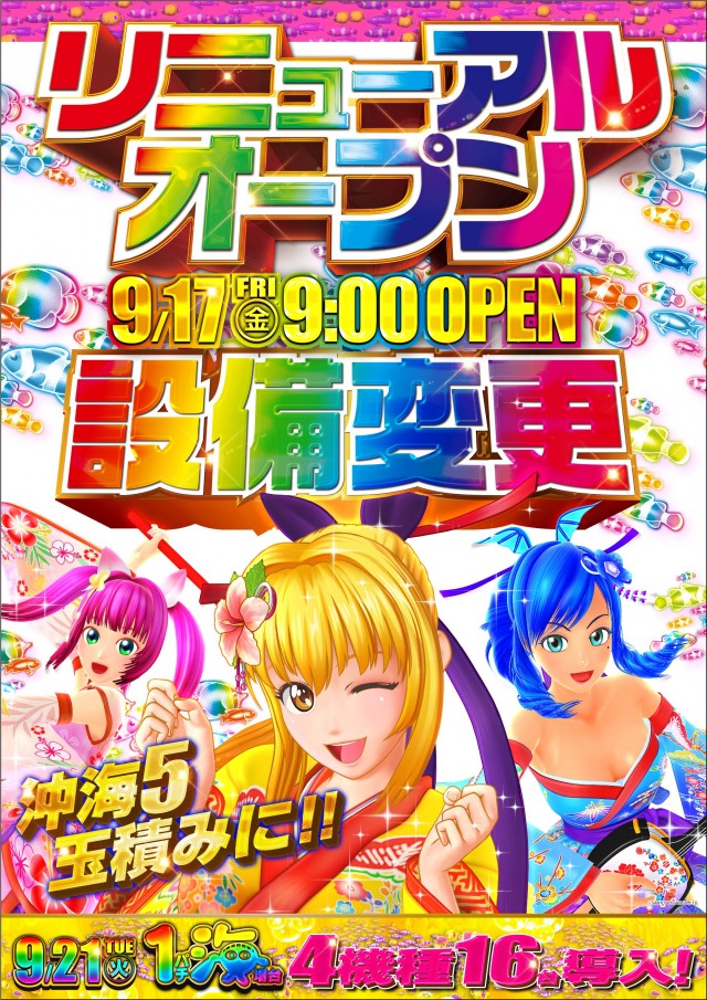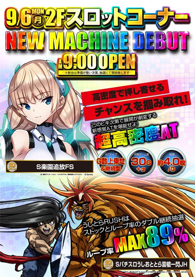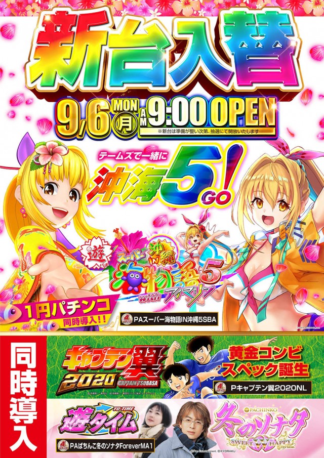 本日9月6日(月)新台入替 9:00OPEN!!