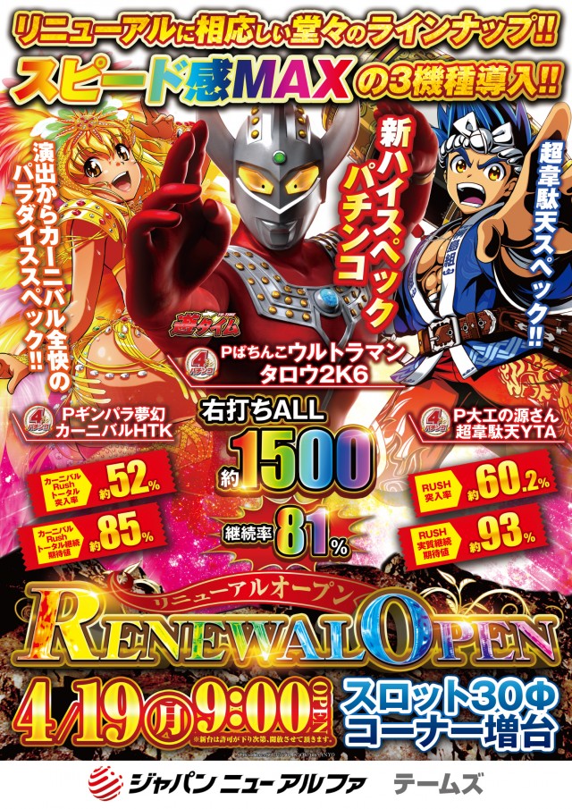 明日4月19日(月)🌈🌈リニューアルオープン🌈🌈