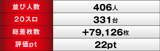 優秀台、ピックアップ機種に加え、パチスロ全体でも好調で、トータルの差枚数も+79,126枚という結果に。危なげない勝利で、見事デビュー戦を飾ったのであった。次も大いに楽しみである