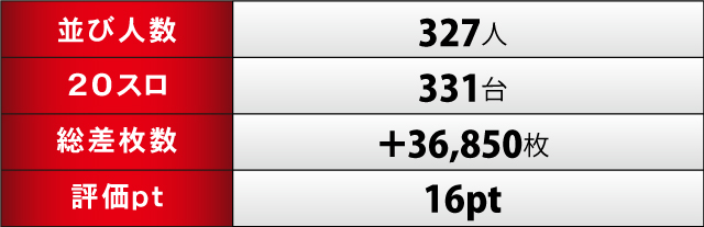 優秀台、ピックアップ機種を中心に、いろいろな台が活躍。トータルでの差枚数も+36,850枚を記録し、評価ptも15ptを獲得した。2022年のスタートを勝利で飾り、ますますその名を高めたのであった。