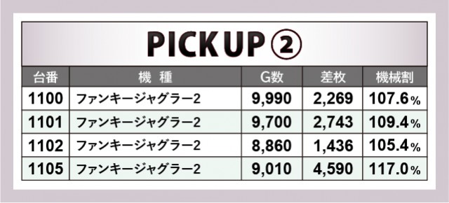 『ファンキージャグラー2』で特筆すべき点は、小役カウンターを使用するファンが多く見られたことだ。しっかりとカウントを続けるその様子から、優秀台の気配を感じずにはいられない!結果としても1105番台の4,590枚という記録が発生、さらに横並びでの2千枚オーバー達成もあり、全台が優秀台だったという可能性も十分にあり得るだろう。