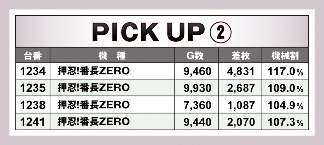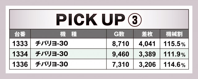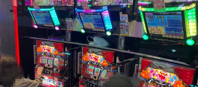 『ジャパンニューアルファ テームズ』はとにかく設置機種が多種多様。それゆえにアチラコチラから優秀台が飛び出てくるのだが、『マイジャグラーⅤ』や『押忍!番長ZERO』などのノーマルタイプやAT機の1番人気と言われる機種にはやはりそれらしき台が見て取れる。また、『チバリヨ-30』などの沖スロも抜かりなし。しかも、優秀台は終日稼働するレベルなので、やはり高設定らしい挙動だったということなのだろう。