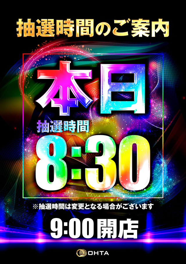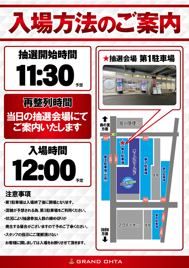 08:30 抽選 08:50 再整列 09:00 入場開始 |
