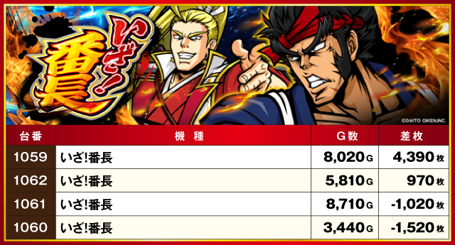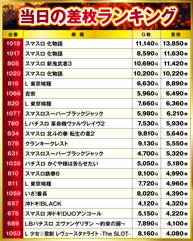 当日の差枚ランキングはコチラ