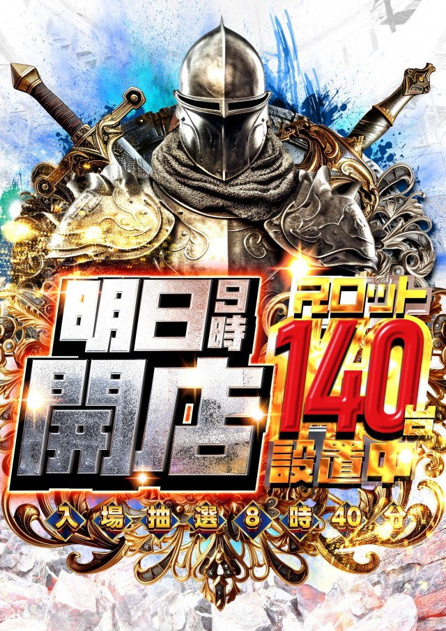 [4]パチ180台 [1]パチ90台[0.5]パチ30台[21.7]スロ140台[2] スロ28台 |