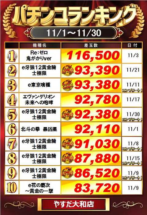 今まで見たことのない景色を。11月7日(金) やすだ大和店にて、DMMぱちタウンの「ぱちタウン取材」を実施。その結果の中から、ぱちタウンが注目すべきポイントを厳選してユーザーにお届け!プレイヤーが楽しんだ一日を下記データにて振り返ってみて欲し…