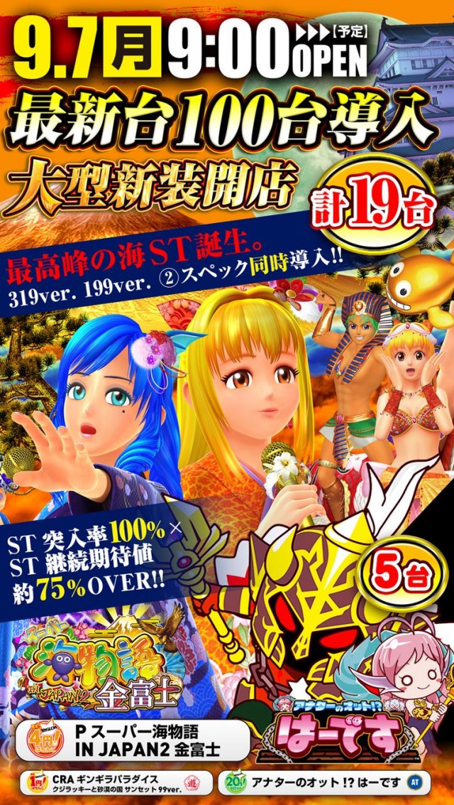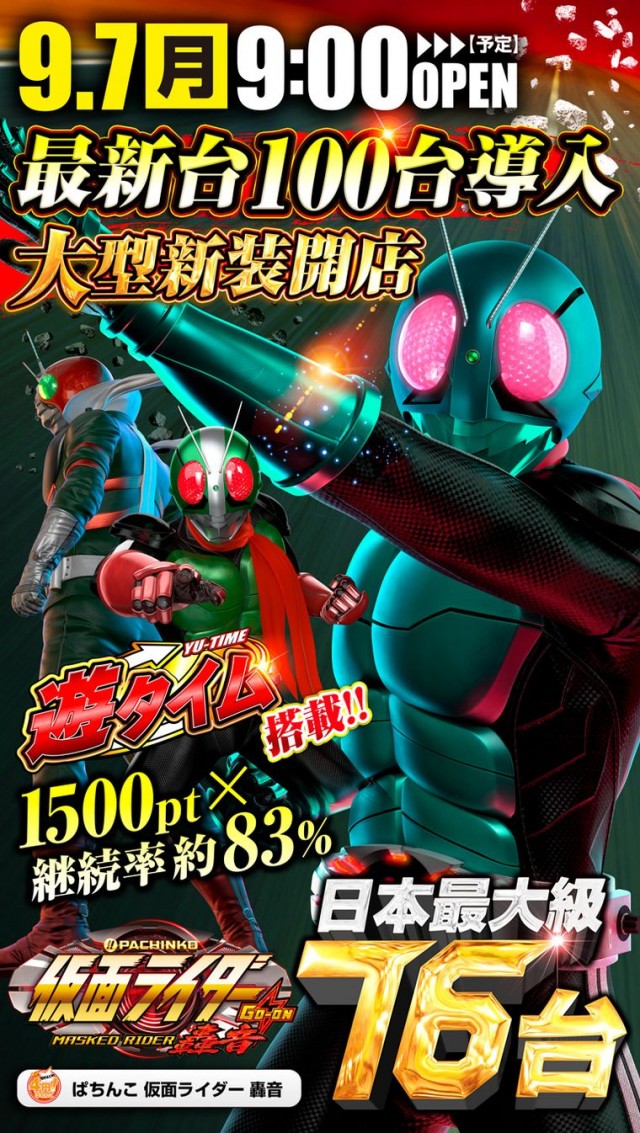【ライダー轟音76台】最新台計100台導入★新装開店★