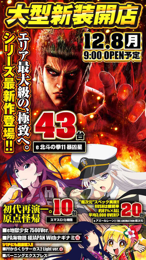 11月7日最新台大量導入!新装リニューアル9:00オープン!
