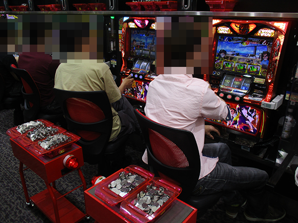 まず、20円パチスロをみると「パチスロ ゴッドイーター」と「バジリスク~甲賀忍法帖~絆」がすぐさま満席となった。ほかにもジャグラーシリーズや「沖ドキ!」などの人気が高く、多くのプレイヤーから支持を集めていた。