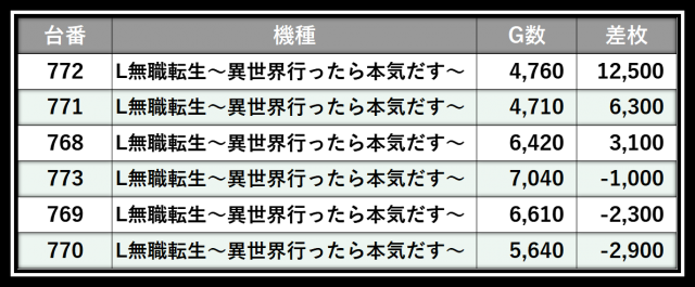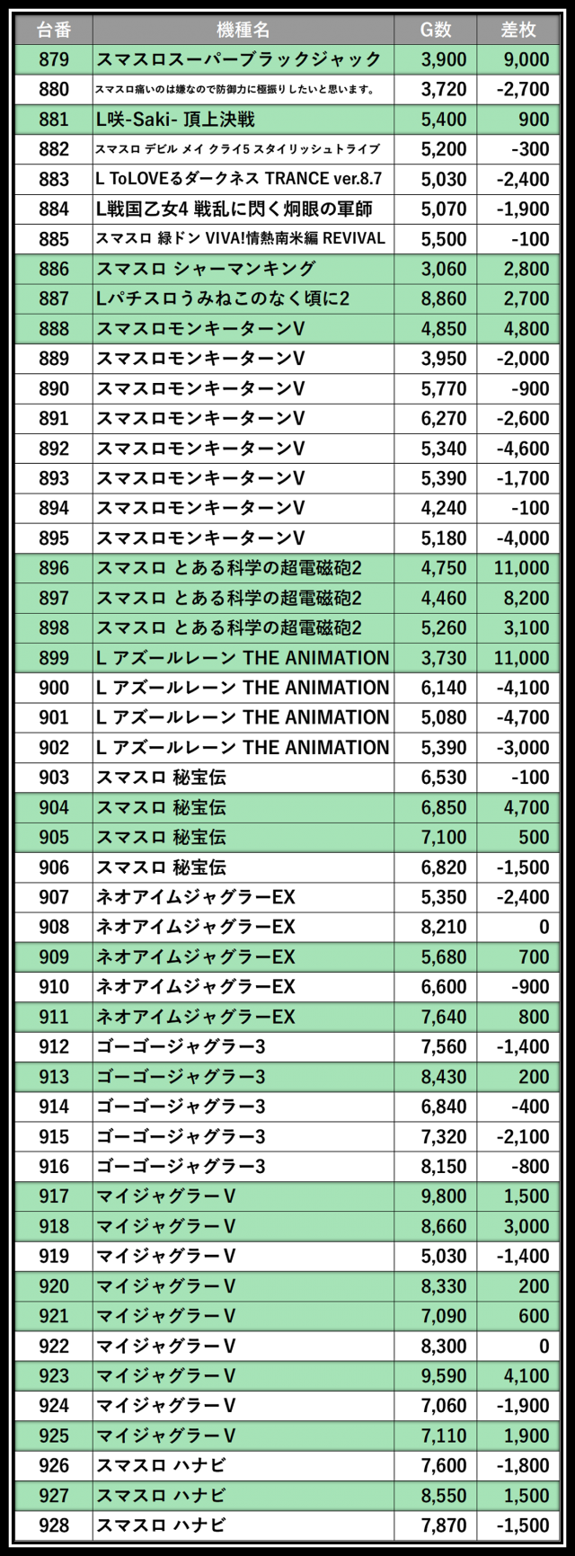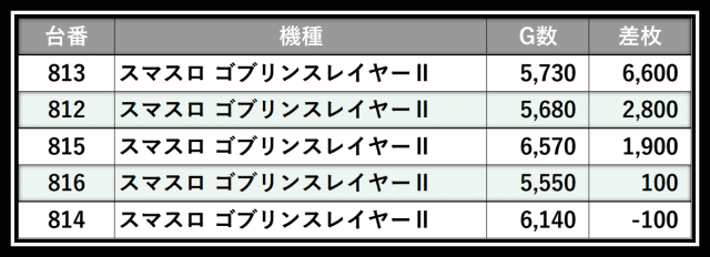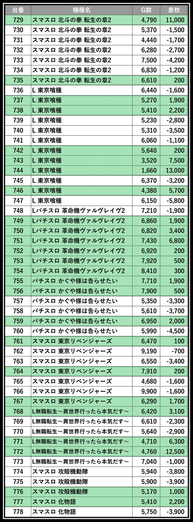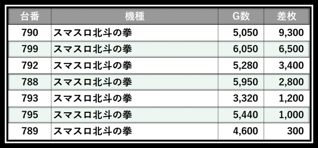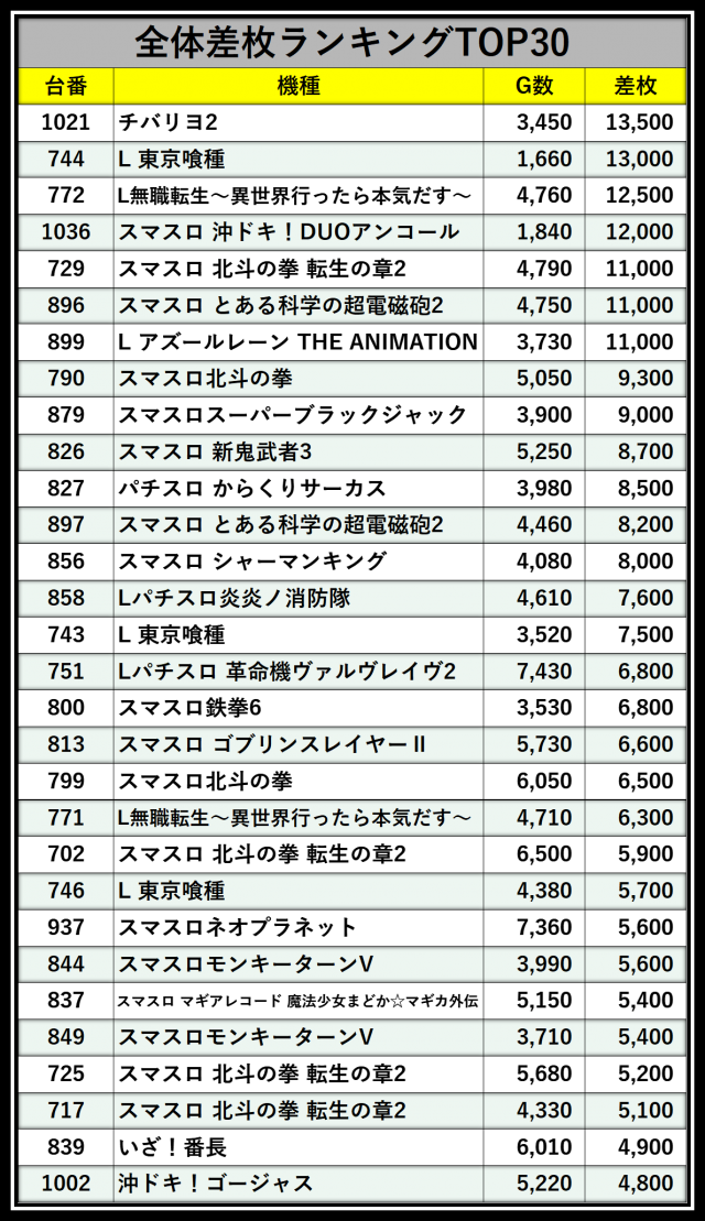 ※差枚数順に掲載しています