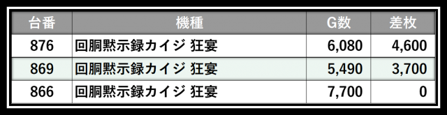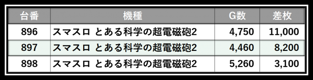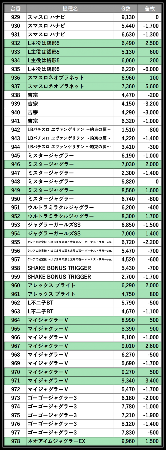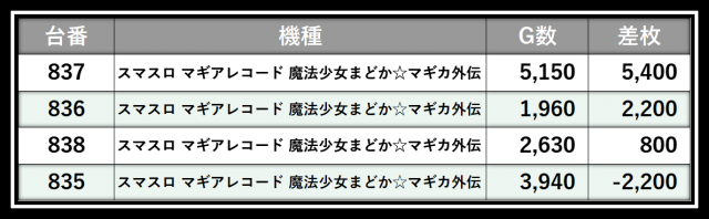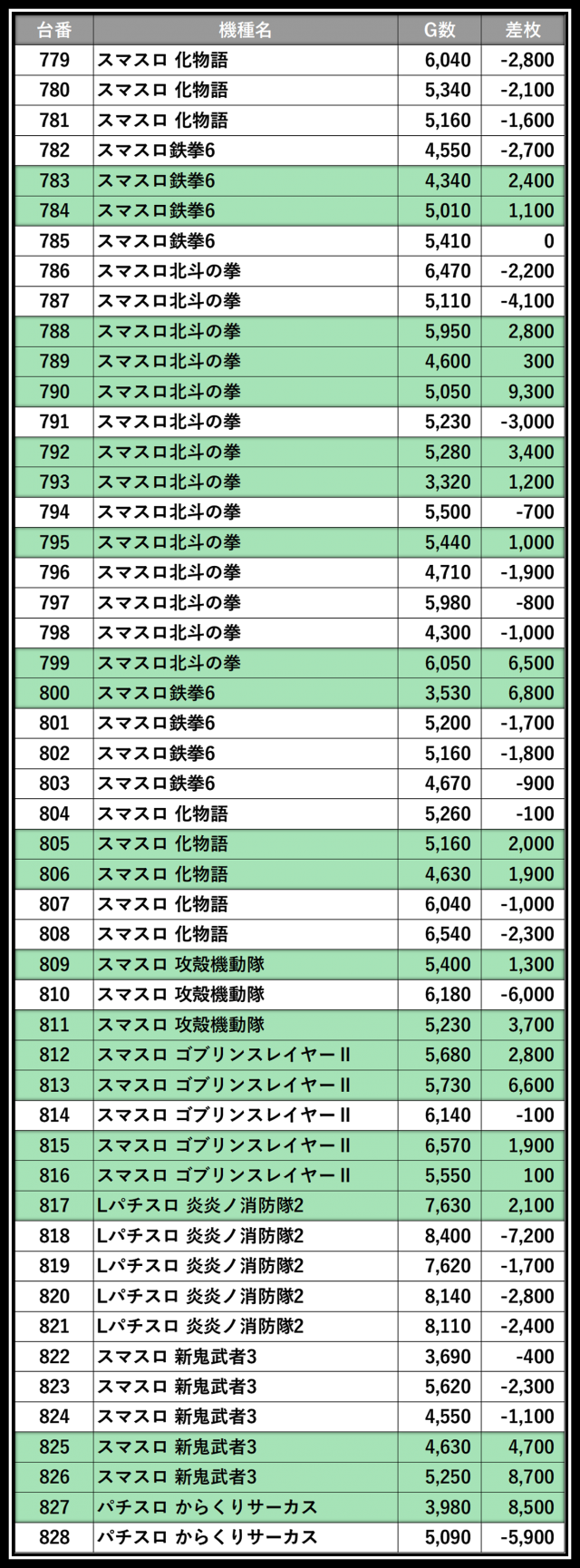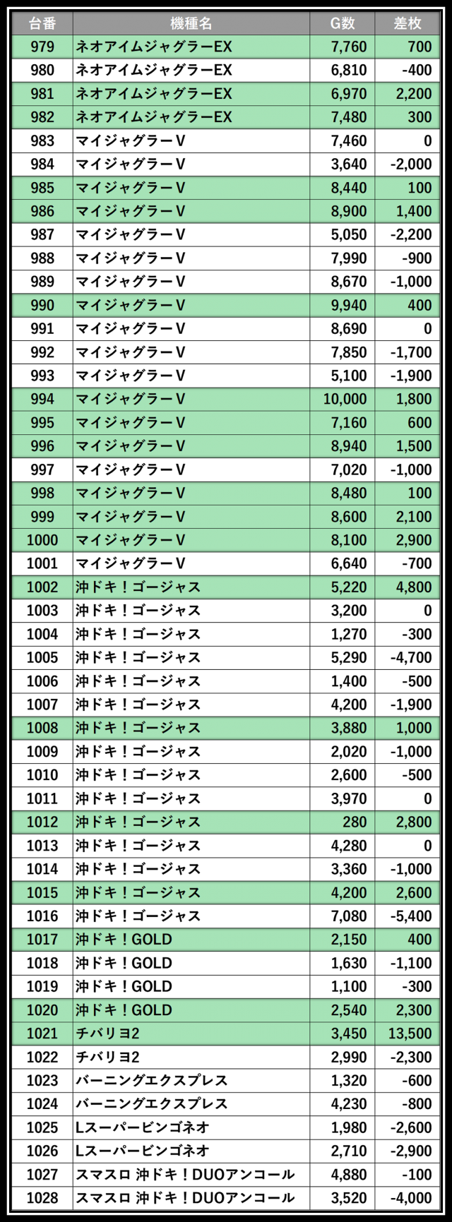 ※差枚数順に掲載しています