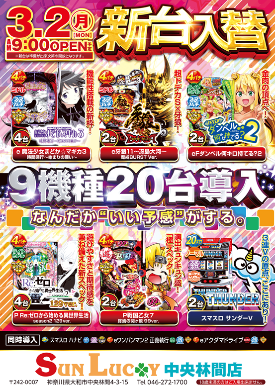 明日【3月2日】サンラッキー中央林間店へ🌈