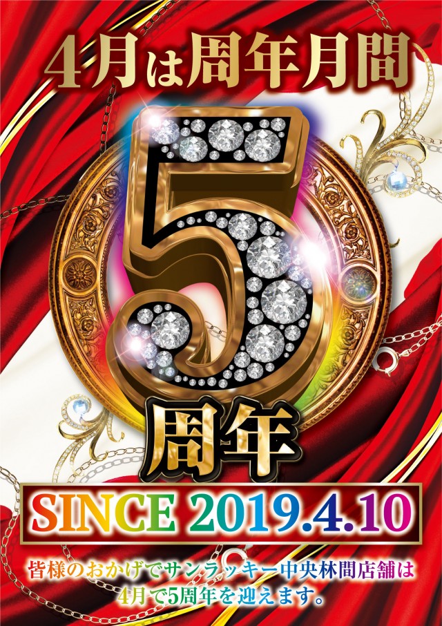 明日【4月10日】サンラッキー中央林間店は5周年を迎えます🌈