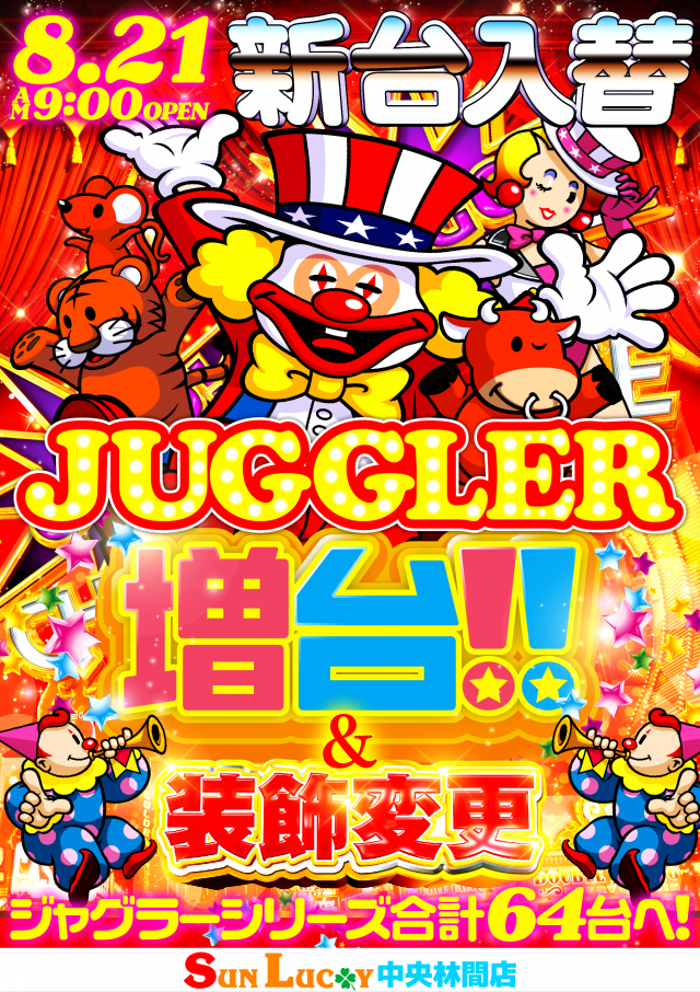 本日新装開店2日目!朝から新台が打てる!ジャグラー増台!